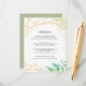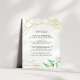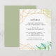 Designed to coordinate with our Terrarium wedding collection, this fresh green botanical guest information card features a golden geometric border accented with lush watercolor greenery. Personalize with your key wedding details, like hotel accommodations, welcome reception information, website and more. Add your custom text using the fields provided and use the Customize function to adjust fonts, sizes and spacing.