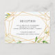 Designed to coordinate with our Terrarium wedding collection, this elegant reception enclosure card features a golden geometric border accented with sprigs of green watercolor leaves and foliage. Personalize with your reception details, timing, venue and address.