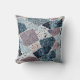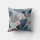 A vibrant geometric mosaic composed of various shapes and patterns in cool tones of blue, lavender, mauve, and white