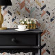 Bring a bold and contemporary touch to your space with this terrazzo chevron multicolor tile wallpaper. Featuring an eclectic mix of terrazzo-inspired patterns in vibrant hues combined with a sleek chevron layout, this design is perfect for creating a statement wall. The peel and stick application makes it easy to install and reposition, offering a modern solution for stylish interiors.