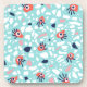 Fun terrazzo coaster with a geometric seamless pattern with weird eyes on some of the abstract marble stones in coral and blue colors.