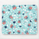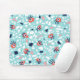 Fun terrazzo mousepad with a geometric seamless pattern with weird eyes on some of the abstract marble stones in coral and blue colors.