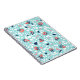 Fun terrazzo notebook with a geometric seamless pattern with weird eyes on some of the abstract marble stones in coral and blue colors.