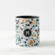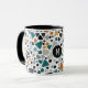 A terrazzo style design featuring random shapes in a range of sizes and colors. Personalize with an initial.