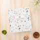 Terrazzo inspired multicolor pattern for teachers with pink apple and name on front.