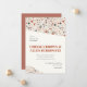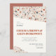 This modern wedding invitation features of the moment terrazzo stone details and mid-century inspired typography making it a great choice for an art museum or mid century modern venue and a no frills, hip and on-trend couple. tying the knot. A color palette of desert inspired shades of cream, blush, mauve, rust and navy blue feel neutral yet full of personality.