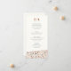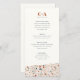 An on-trend terrazzo stone detail and mid-century inspired typography give this wedding menu a no frills, hip vibe in a desert inspired color palette of rust, blush and slate blue all topped off with a modern monogram.