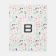 White background with multi coloredterrazzo pattern in blush, mint, beige and blue. Personalize and add your monogram initial, letter.