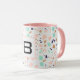 White background with multi coloredterrazzo pattern in blush, mint, beige and blue. Personalize and add your monogram initial, letter.