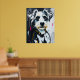 Terrier Pup covered in Paint after a playful day of trouble. Downloadable, Black and White Abstract with splashes of color
