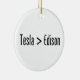 Lightweight, smooth, pure white ornament with nice sheen. Perfect size to be seen from across the room ... and to attract closer inspection! Price was great for ordering enough for the whole family! Clear, bold black design just as requested. Matches the order exactly. Just so nice!