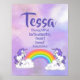 Purple Name Poster with rainbow, unicorns and customizable text. The adjectives start with each letter of the chosen name. You can customize the adjectives for this name or choose another name and corresponding adjectives. Or you can contact me to customize a poster with your name of choice. NOTE: when customizing, the top name is written twice (once in purple and once with a lighter "shadow") to make it stand out.