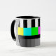 Design inspired by the old tv test card. Black and white pattern with brightly colored squares. Great gift idea for a TV addict!
