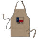 The apron is of very good quality. I used it while icing cookies. The dark colored icing washed off of the apron very well! The neck strap is sturdy and easy to resize on the adult size apron. The print was clear and well defined. I am glad I was able to personalize with name.