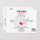 Texas. The state of the United States of America. Marked red on the USA map. Useful info about the capital, the largest city, the time zone, as well as about the highest and the lowest points. The number of the population, state's name before statehood and the date of admission to Union, nickname, motto and the state's song. Word Texas is decorated with the American flag of blue, white and red colors. Customizable text 50 STATES and the image-text USA at the bottom right corner on the front and on the back. Customizable template text on the back. You can change or delete template texts and you can use your own logo instead of the USA image. This is a postcard for anyone. You can transfer this design to another product of your choice, just use an option to the right of this description. Enjoy and be happy!