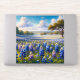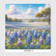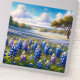 A dreamy expanse of Texas bluebonnets stretches across rolling hills, bathed in soft sunlight beneath a bright, cloud-dappled sky. The palette glows with vivid indigo, lavender, and creamy white blooms, set against golden-green grasses and scattered oak trees that frame the distance with grace. This enchanting landscape evokes a serene, pastoral mood—perfectly capturing the quiet magic of springtime in the countryside. Painted in a romantic, slightly impressionist style, the composition offers both depth and warmth, with gentle gradients of light and color that draw the viewer in. Ideal for those who adore wildflower fields, Southern charm, and nature’s soft grandeur. AI generated artwork.