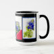 Unique mug design featuring the Texas Bluebonnets, the Texas state outline and flag colors on black.