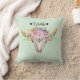 Texas Boho Cow Skull With Flowers Chic Trendy Throw Pillow