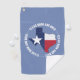 Show your Texas pride with this golf towel that resembles the Texas state flag. Has the words "Texas Born and Bred" around the silhouette of Texas. Set against a blue background (background color can be changed). Makes a great gift for a Texas native! Design has a distressed finish.