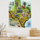 Texas Cartoon Map Poster