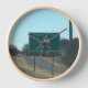 A clock featuring a photo of a welcome to Texas sign.