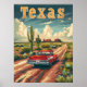 Immerse yourself in the timeless allure of the Texas desert with our travel ad illustration. This captivating piece captures the essence of the Lone Star State, where vintage cars navigate through the vast desert landscapes. Picture yourself cruising along dusty roads, feeling the warm Texan breeze, and savoring the nostalgia of a bygone era. Embark on a journey to Texas, where every drive is a celebration of vintage charm and the rugged beauty of the desert.