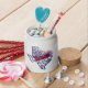 This cute treat jar features Texas state silhouette with hand-drawn flower doodles fill, and "Home Sweet Home" text.