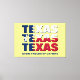 Patriotic TEXAS Friendship Matters canvas print, showing TEXAS TEXAS TEXAS designed in the flag of Texas, set against a pale yellow background. Underneath, there is CUSTOMIZABLE TEXT that reads WHERE FRIENDSHIP MATTERS, which you can personalize by adding your name or creating your own text. The state motto of Texas is Friendship, and the Spanish word, 'tejas', means 'friends', from which the name Texas is said to derive. This would make a great gift for Texans and anyone who loves the American 'Lone Star State', especially at Christmas, birthdays, anniversaries, and for Texas Heritage Month. Choose from a wide selection of Texas-themed cards, invitations, party supplies, clothing, home decor and gifts, designed by Berean Designs. Other sizes are listed separately.