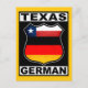 Texas German design, in the style of a cool American road route sign. The text Texas German is along the top and bottom, with the flag of the State of Texas and the flag of Germany inside the route sign. Great for Texans of German descent, and for ex-pats in the Lone Star State.