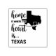 Texas home is where the heart is in mixed script and uppercase font with the silhouette of the state and a decorative heart.