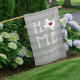 Show some home state pride with this cool Texas house flag. Design features "HOME" in white lettering on a soft grey striped background. Customize the location of the red heart inside the state silhouette by using the design tool. Search for your coordinates on any mapping site and enter them in the template field provided. Makes a unique custom housewarming gift for new homeowners and a perfect addition to your Texas home!
