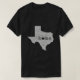 Texas-themed t-shirt featuring a distressed outline of the state map with a heart over the location of the wearer's home. Perfect gift for proud Texans.