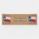 Show your pride of Texas with this banner for your event. Great for outside or inside events such as meetings, barbecue parties, dances, business or other event. The original art of a red, white and navy blue Lone Star Flag is on a tan background. The top and bottom borders are red lines with blue stars above and below the lines. Customizable words can easily be changed to your event, or personalize with a personal name or a business name. Make it yours own. Coordinate with other products in this store. Invitations, paper plates and napkins are available along with many other products such as teeshirts, aprons, iPhone cases and more.