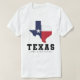 Texas, Lone Star State with flag map design men's white T-Shirt. This design features the word "Texas" in black with the map of the state filled with the flag of Texas. Wear this T-Shirt to show you are patriotic and proud to be from Texas or to give as a gift to any Texan.