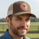 Custom Leather Patch Hat, Sytle: Adult Retro Trucker Cap, Color: Heather / Black, Shape: Circle
