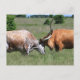 Texas Longhorn Cow Fight Postcard