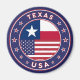 Badge of Texas with flag of Texas and flag of USA colors, rounded shape.