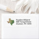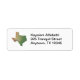 Address details on this label sit to the right of an attractive map of Texas. Edit the text area to enter your own details before purchasing.