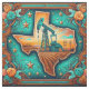 Oil / Gas Pump Jack with Texas Shape and Leather Print Fabric.