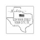 Design a personalized rustic rubber stamp for your family's return address in Texas. This unique stamp showcases the State of Texas and charming typography, allowing you to add your own family name (or business name) and address.