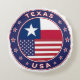 Badge of Texas with flag of Texas and flag of USA colors, rounded shape.