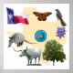 Set on a white background, the map of Texas is overlaid by the State Seal, the State Flag, and officially adopted plant and animal symbols of the State: the Bluebonnet flower, the Monarch Butterfly, the Mockingbird, the Armadillo, the Longhorn Cattle, and the Pecan Tree. It makes it easy to show pride in your State!