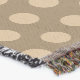A quality printed throw has its advantages. This is a much finer weave throw than its loopier cousins, and though lighter, it is worth the investment for custom room accessorizing. The back is much prettier than the typical brown, and the fringe on the long sides very vivid, the selvage nicely done. Before photographing, I washed the throw in cold water, delicate, with a thicker woven throw the same size. On tumble dry low, this throw was dry in half the time as the other. This is a very practical quality if you use throws for furniture covers or to wrap up in frequently. The sleekness of the fabric makes it a great layer for accenting or protecting without the feeling of sitting on too much stuff. Perfect for napping or when you feel a light chill coming on. The color printing is beautiful and on this fabric, matched the design and color of my Photoshop image. This is an advantage for blending room fabrics and colors. The fringe on the short sides prints the colors from the design image and therefore varies from the side fringe. I streaked a white fractal line through the plaid pattern to give the illusion of weaving. This printed as crisp as an illusory thread, and put some white in the short side fringe, showing another advantage of print vs loomed- for artistic purposes, line lines, detail, and color integrity can be planned and preserved. My loomed throws have color limitations and more of a needlepoint texture. Print throws reproduce an exact image. The throw felt a little stiff straight out of the package, but this went away in the first delicate wash. Of course I searched the wash water for ink or bleeding and there was none.