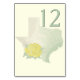 Elegant ivory colored wedding reception table number card, with graphics of a tan and green map of Texas, with a pale yellow rose. Personalize the number for each table at your reception. Matching products available.