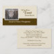 Sheep farmer or rancher's business card template with a photo of a white Texel ewe on a pale cream background, with a dark brown band under for your name. The farm name is split into three allowing plenty of room for a long name. The template for address details is on the reverse, with two additional lines for other information. The image can be changed for one of your own or a logo.