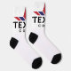 TeXit Coin Logo Sock in white with black heels. Unisex