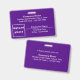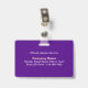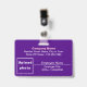 Plain texts design badge with employee photo that you can customize for you and your employees. Design colors and shape are pink and white texts on purple background and landscape format rectangle shape. To customize this badge, type your business or company name, address, phone number, employee name, employee title, employee ID number and upload employee photo. After typing texts and uploading photo, please check the appearance on front and back sides. If the appearance is pleasing to you, you can place your order now. If you need to resize and move the texts and photo to fit on this badge, please change in the design tool. You can also make other changes in the design tool according to the appearance that you prefer such as changing the background color, font color and font style.
