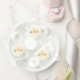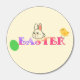 Text, bunny and chic with green egg Easter themed design on cream white background.