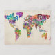 A typographic text map of the World in an urban watercolor style. Each country is represented by its name, which is shaped to fit into the geographically correct area. Virtually all countries are represented expect for some of the very smaller islands in the Pacific and Caribbean.