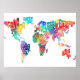 A typographic text map of the World in an urban watercolor style. Each country is represented by its name, which is shaped to fit into the geographically correct area. Virtually all countries are represented expect for some of the very smaller islands in the Pacific and Caribbean.